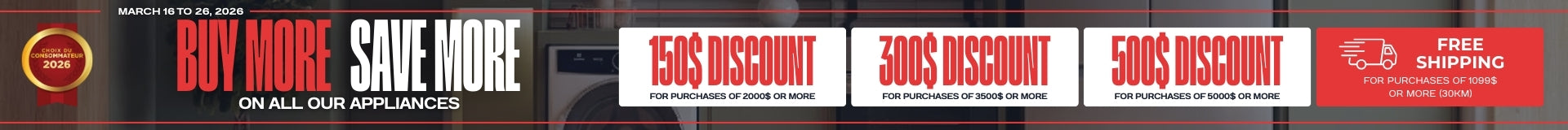 At Bonprix Électroménagers, we are committed to providing exceptional value to our customers. That's why we have exciting promotions every week, offering you even more opportunities to save on your favorite appliance brands. From special discounts on specific models to bundle deals that provide incredible savings when you purchase multiple appliances, our promotions are designed to help you get the most bang for your buck. Check our website regularly to stay up to date with our latest offers and promotions.