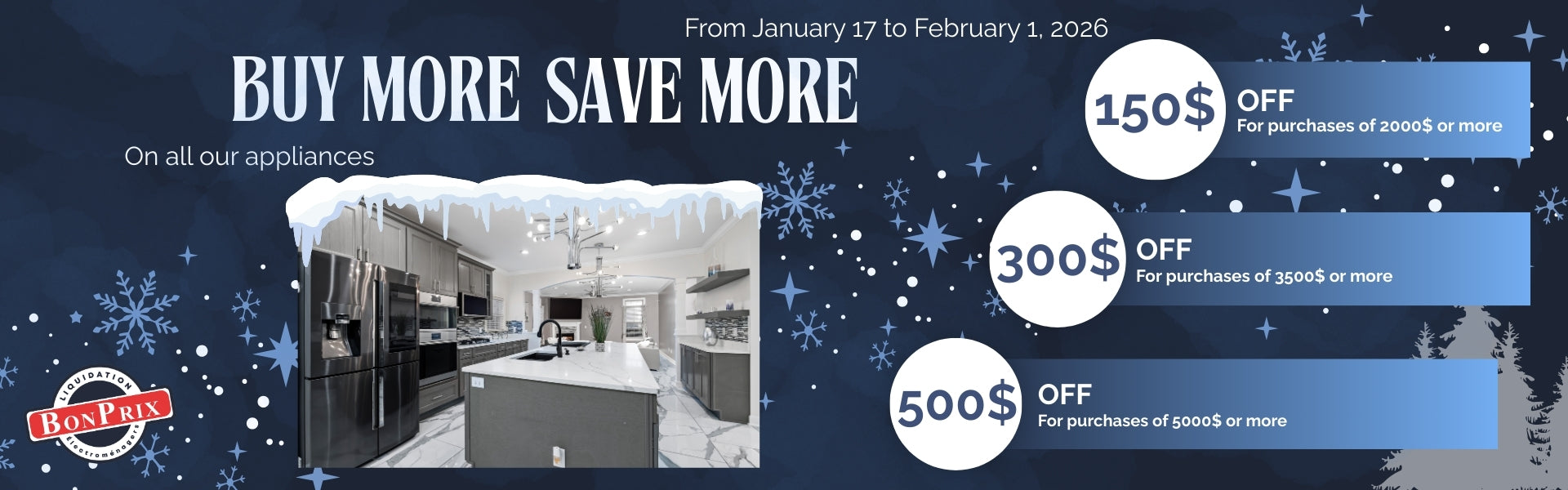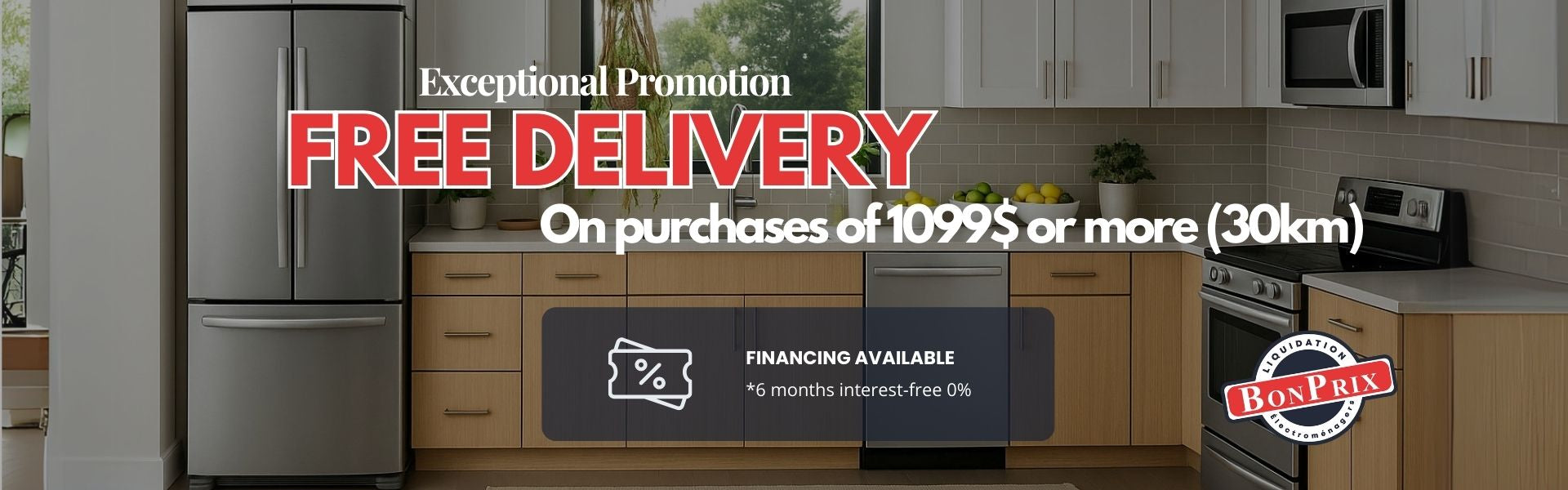 Welcome to Bonprix Électroménagers at Montréal, Laval and Longueuil your specialist in the liquidation of the best brands of household appliances such as Electrolux, LG, Samsung, GE, Frigidaire, Avant-garde (AVG), Pure Design, etc. Our product range includes refrigerators, ranges, dishwashers, microwave, hoods, wall ovens, cooktops, wine storage, washers, dryers, laundry pairs, et plus!.
